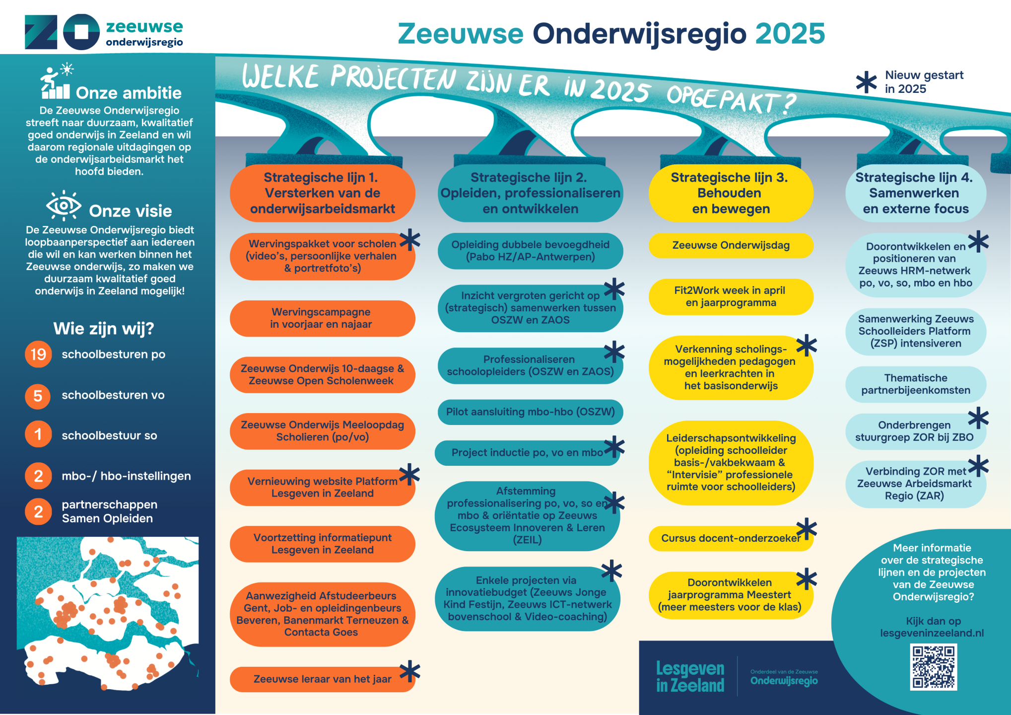 Onderwijs is de basis van onze samenleving. Daarom bundelen we binnen de Zeeuwse Onderwijsregio onze krachten om genoeg gemotiveerde en goed opgeleide leraren te hebben, nu en in de toekomst. We delen kennis, versterken elkaar en werken samen aan oplossingen voor het lerarentekort.